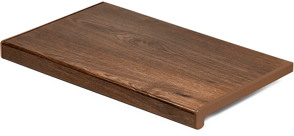 Подоконник “Орех” матовый имеет цвет темного дерева. Хорошо смотрится как с окнами темных цветов, так и с белыми окнами.